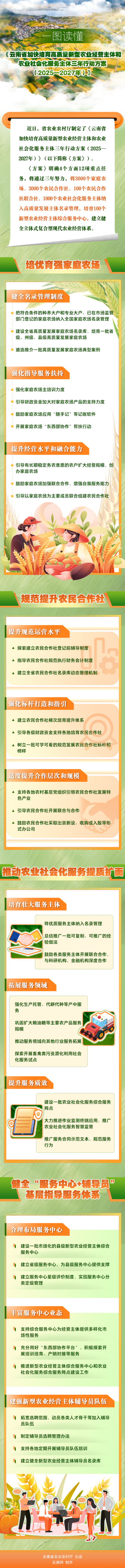 一圖讀懂《云南省加快培育高質(zhì)量新型農(nóng)業(yè)經(jīng)營主體和農(nóng)業(yè)社會化服務主體三年行動方案(2025—2027年)》