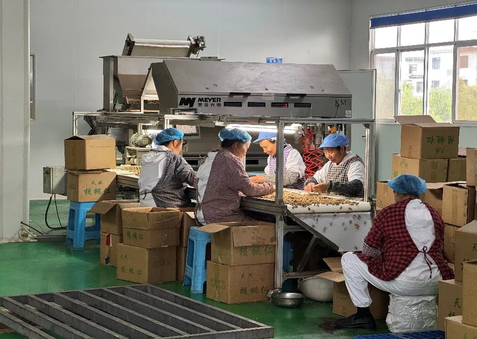 2005年,懷揣著這份赤誠,肖華創(chuàng)辦了福祿食品有限責任公司。從最初的手工作坊起步,他一步一個腳印,傾注二十年心血,逐步構(gòu)建起“基地種植+精深加工+銷售”的全產(chǎn)業(yè)鏈條。公司年加工核桃達4000噸,成長為州級、省級龍頭企業(yè)。更可貴的是,他通過“公司+合作社+基地+農(nóng)戶”模式,在全縣設(shè)立20多個代加工點,讓分散的農(nóng)戶緊密聯(lián)結(jié)在產(chǎn)業(yè)鏈上,成為了鄉(xiāng)親們信賴的致富領(lǐng)路人。
