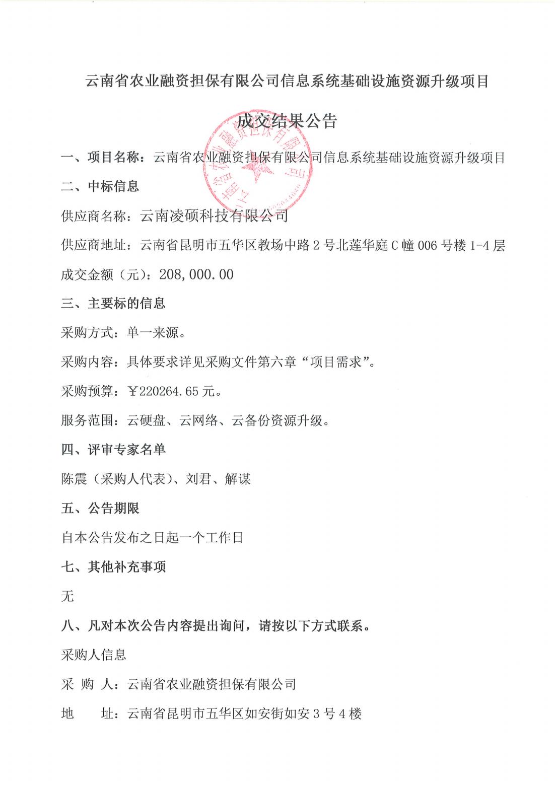 云南省農(nóng)業(yè)融資擔(dān)保有限公司信息系統(tǒng)基礎(chǔ)設(shè)施資源升級(jí)項(xiàng)目成交結(jié)果公告