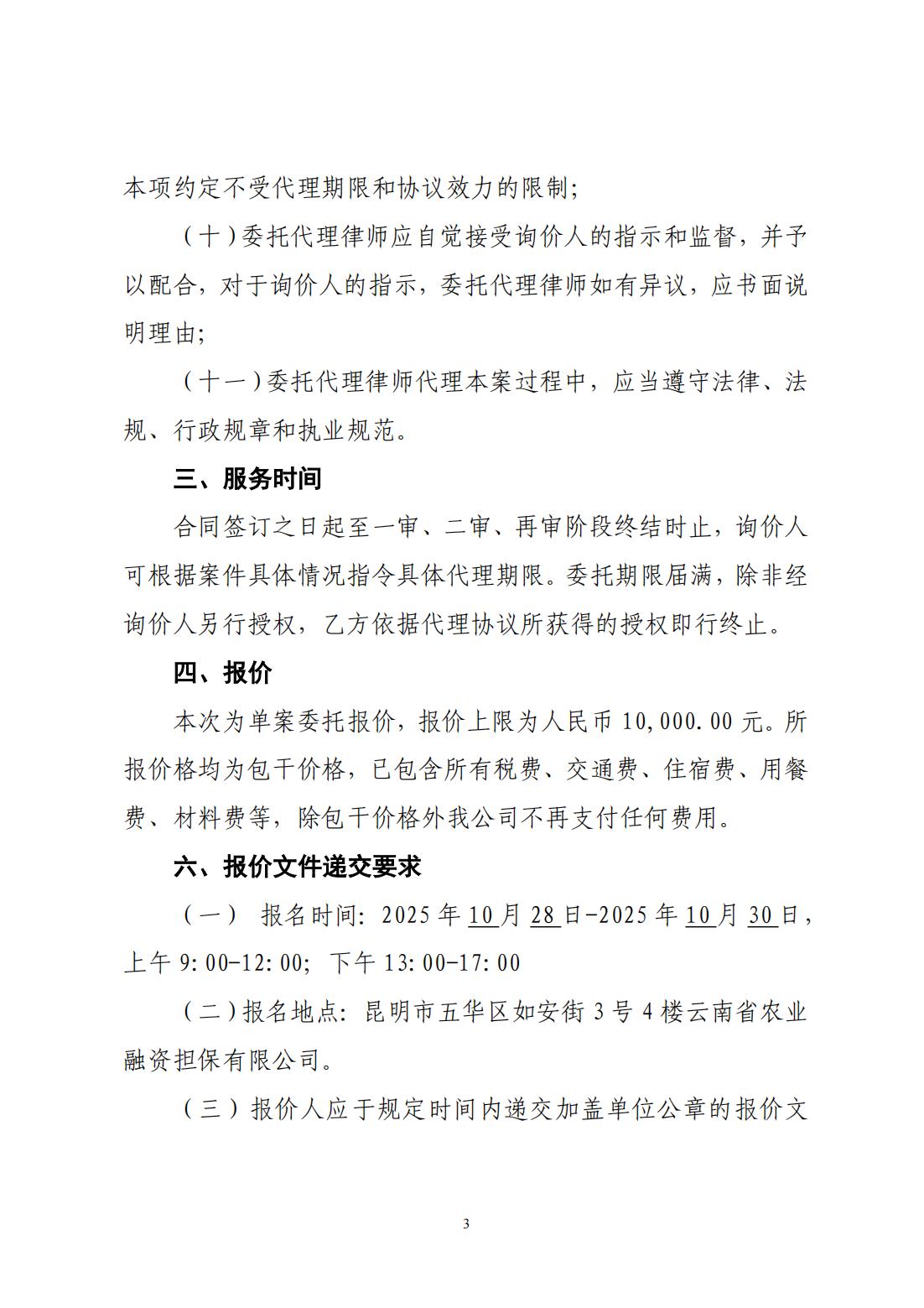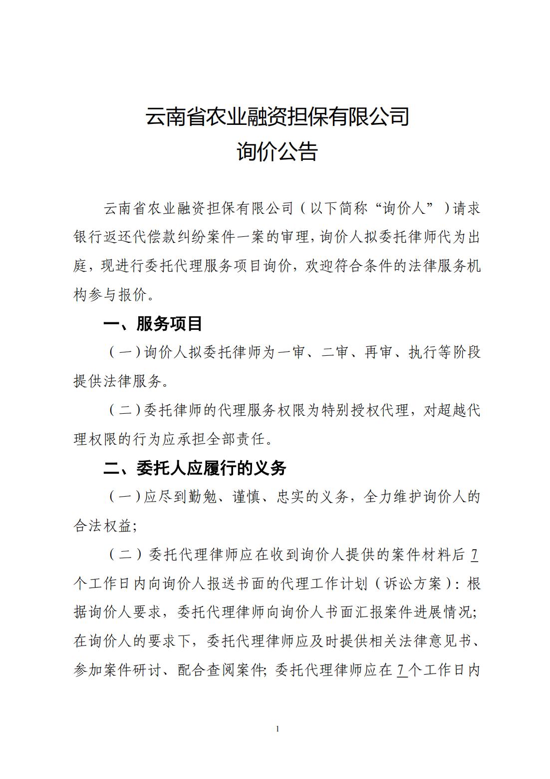 云南省農(nóng)業(yè)融資擔保有限公司詢價公告