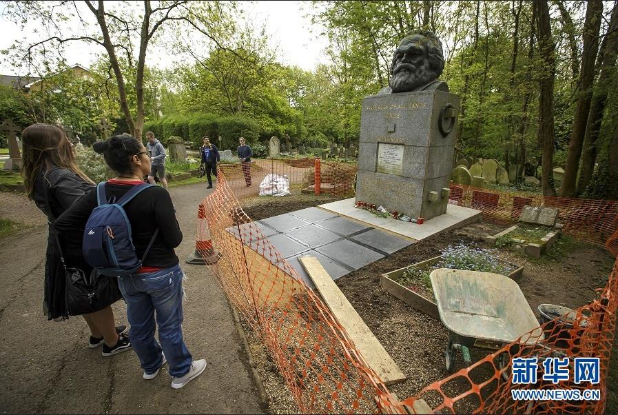 歷史長(zhǎng)河奔流不息,真理之光穿越時(shí)空。1818年5月5日,德國(guó)小城特里爾,一代偉人馬克思誕生。200年后,世界東方。高擎馬克思主義的精神火炬,在習(xí)近平新時(shí)代中國(guó)特色社會(huì)主義思想指引下,中國(guó)共產(chǎn)黨正領(lǐng)導(dǎo)億萬(wàn)人民書寫人類發(fā)展史上新的奇跡。這是2018年5月3日,在英國(guó)倫敦北部海格特公墓,人們來(lái)到正在進(jìn)行維修的馬克思墓前參觀。新華社發(fā)(蒂姆·愛(ài)爾蘭攝)