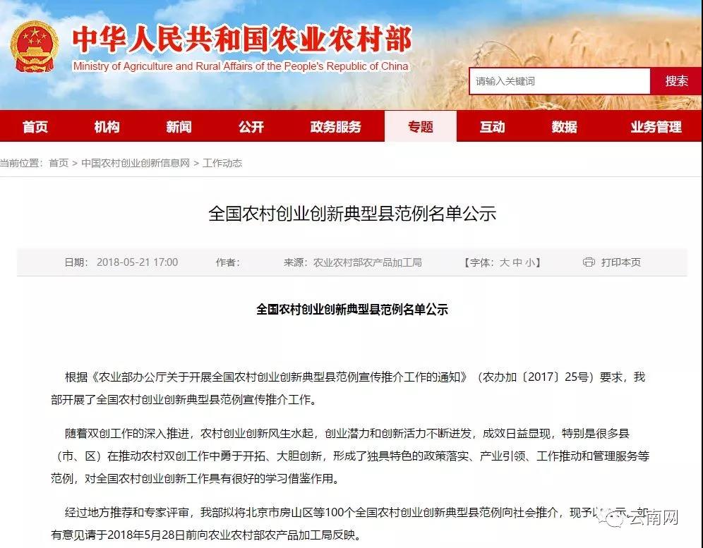 經(jīng)過地方推薦和專家評(píng)審,農(nóng)業(yè)農(nóng)村部擬將北京市房山區(qū)等100個(gè)全國農(nóng)村創(chuàng)業(yè)創(chuàng)新典型縣范例向社會(huì)推介,現(xiàn)予以公示。