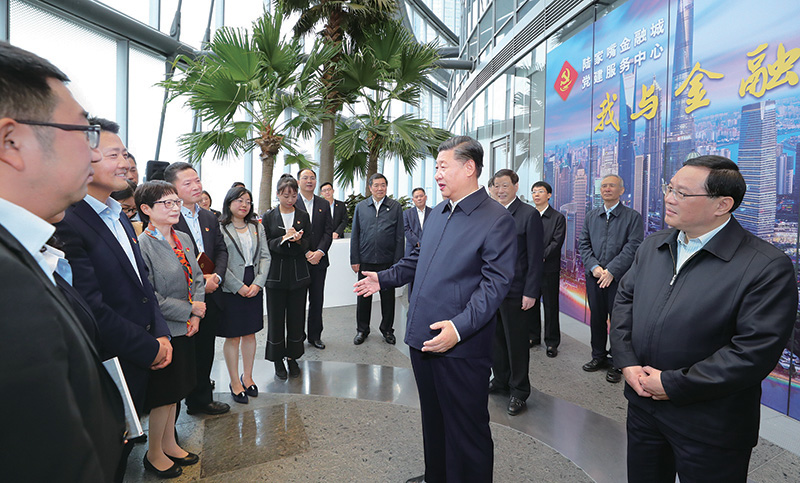 2018年11月6日至7日,中共中央總書記、國(guó)家主席、中央軍委主席習(xí)近平在上??疾臁_@是6日上午,習(xí)近平在上海中心大廈22層的陸家嘴金融城黨建服務(wù)中心,同正在聯(lián)合開展主題黨日活動(dòng)的企業(yè)黨員親切交談。