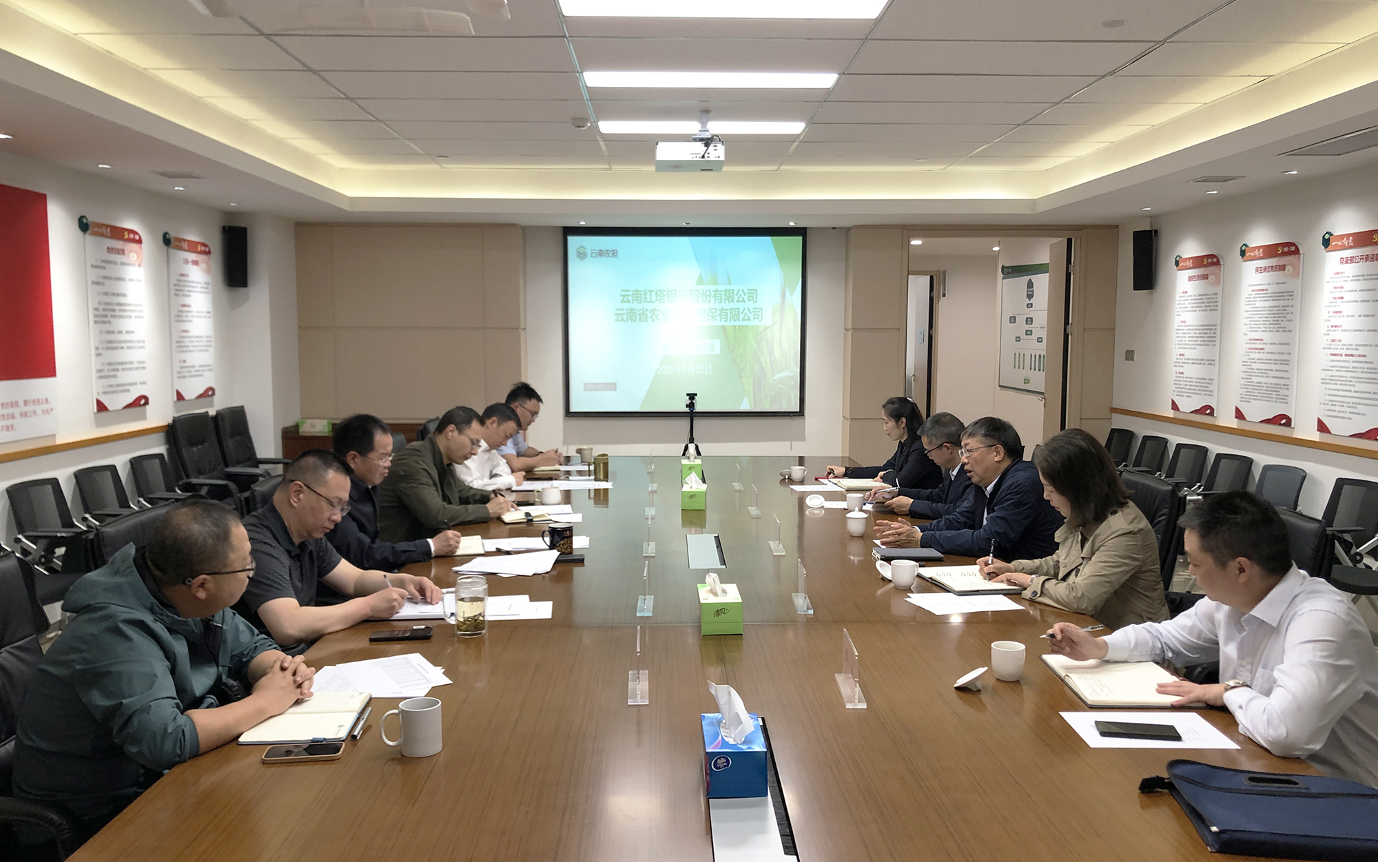 3月22日,云南農(nóng)擔(dān)與紅塔銀行召開(kāi)銀擔(dān)合作座談會(huì)。紅塔銀行行長(zhǎng)張振民、行長(zhǎng)助理張繼、風(fēng)險(xiǎn)管理部、普惠金融業(yè)務(wù)部,公司董事長(zhǎng)杜開(kāi)波、總經(jīng)理李世偉、副總經(jīng)理廖寅皓、副總經(jīng)理梁威、業(yè)務(wù)發(fā)展部及戰(zhàn)略發(fā)展部參加會(huì)議。雙方就現(xiàn)階段戰(zhàn)略合作有關(guān)事宜進(jìn)行深入交流并達(dá)成共識(shí)。